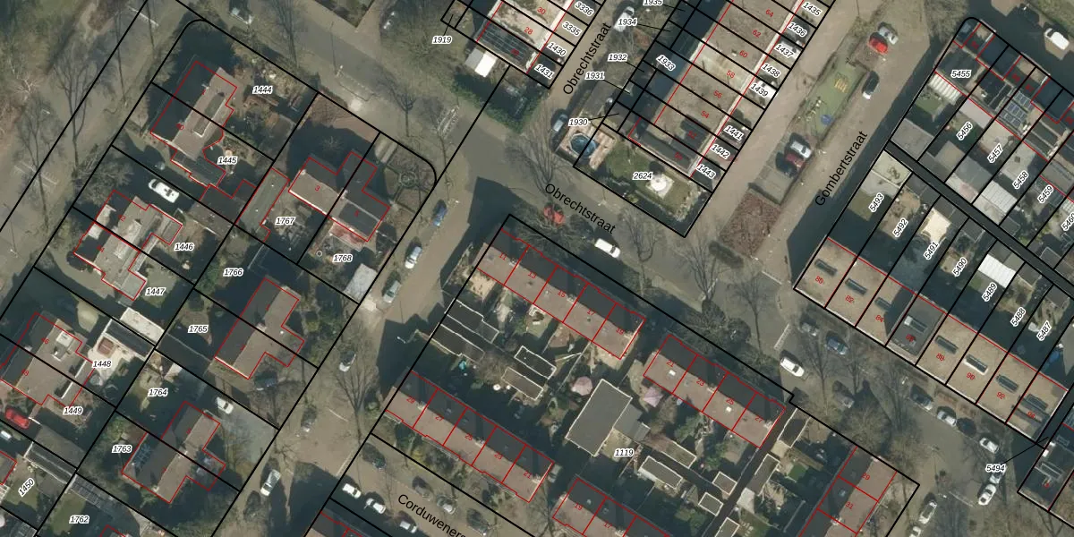 Het perceel waarop Obrechtstraat 13 staat heeft een oppervlakte van 4386 m². Dit is een zeer groot perceel. De perceeloppervlakte wordt geregistreerd door het Kadaster. Gedetailleerde informatie over de maten van dit perceel kunt u vinden in het rapport Kadastrale kaart met maatvoering van Obrechtstraat 13.