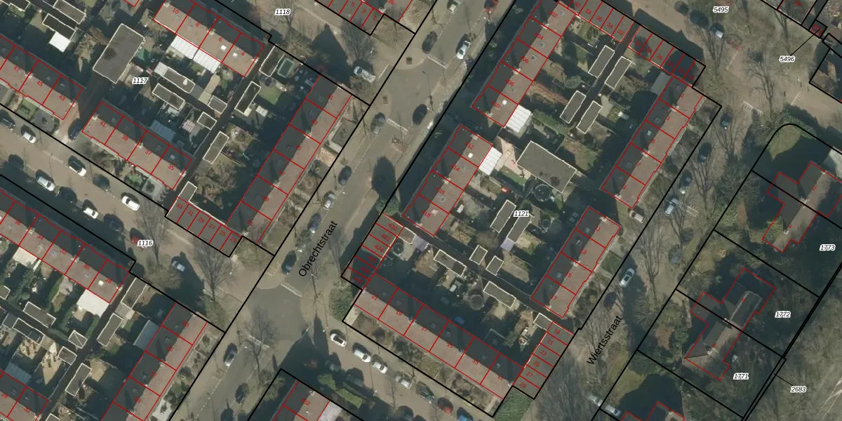 Het perceel waarop Obrechtstraat 418 staat heeft een oppervlakte van 5152 m². Dit is een zeer groot perceel. De perceeloppervlakte wordt geregistreerd door het Kadaster. Gedetailleerde informatie over de maten van dit perceel kunt u vinden in het rapport Kadastrale kaart met maatvoering van Obrechtstraat 418.