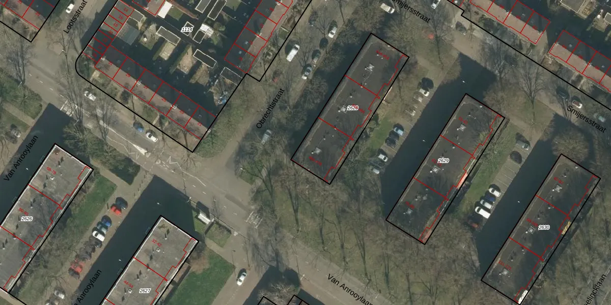 Het perceel waarop Obrechtstraat 470 staat heeft een oppervlakte van 736 m². Dit is een groot perceel. De perceeloppervlakte wordt geregistreerd door het Kadaster. Gedetailleerde informatie over de maten van dit perceel kunt u vinden in het rapport Kadastrale kaart met maatvoering van Obrechtstraat 470.