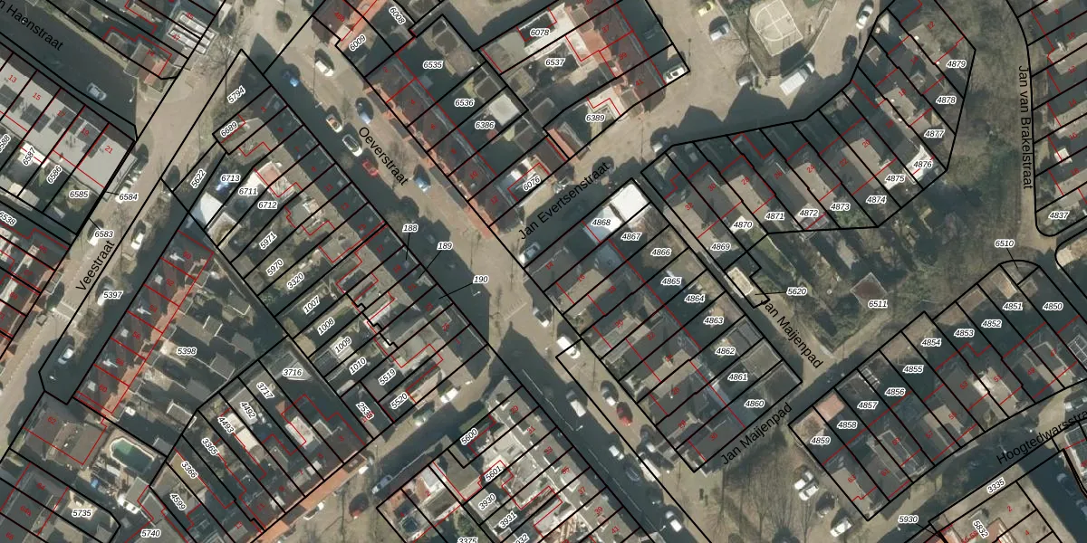 Oeverstraat 14 is gelegen op kadastraal perceel TBG01R4868. Deze kadastrale aanduiding is uniek en wordt gebruikt door het Kadaster om eigendomsrechten en andere zakelijke rechten vast te leggen. Het perceel maakt onderdeel uit van de kadastrale gemeente Tilburg.