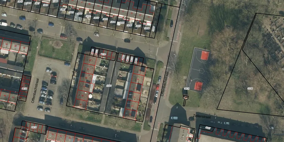 Het perceel waarop Offenbachstraat 11 staat heeft een oppervlakte van 2115 m². Dit is een zeer groot perceel. De perceeloppervlakte wordt geregistreerd door het Kadaster. Gedetailleerde informatie over de maten van dit perceel kunt u vinden in het rapport Kadastrale kaart met maatvoering van Offenbachstraat 11.