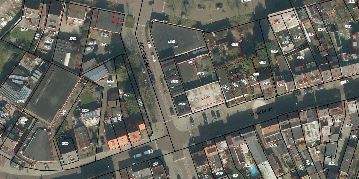 Offenbachstraat 110 is gelegen op kadastraal perceel TBG01S5353. Deze kadastrale aanduiding is uniek en wordt gebruikt door het Kadaster om eigendomsrechten en andere zakelijke rechten vast te leggen. Het perceel maakt onderdeel uit van de kadastrale gemeente Tilburg.