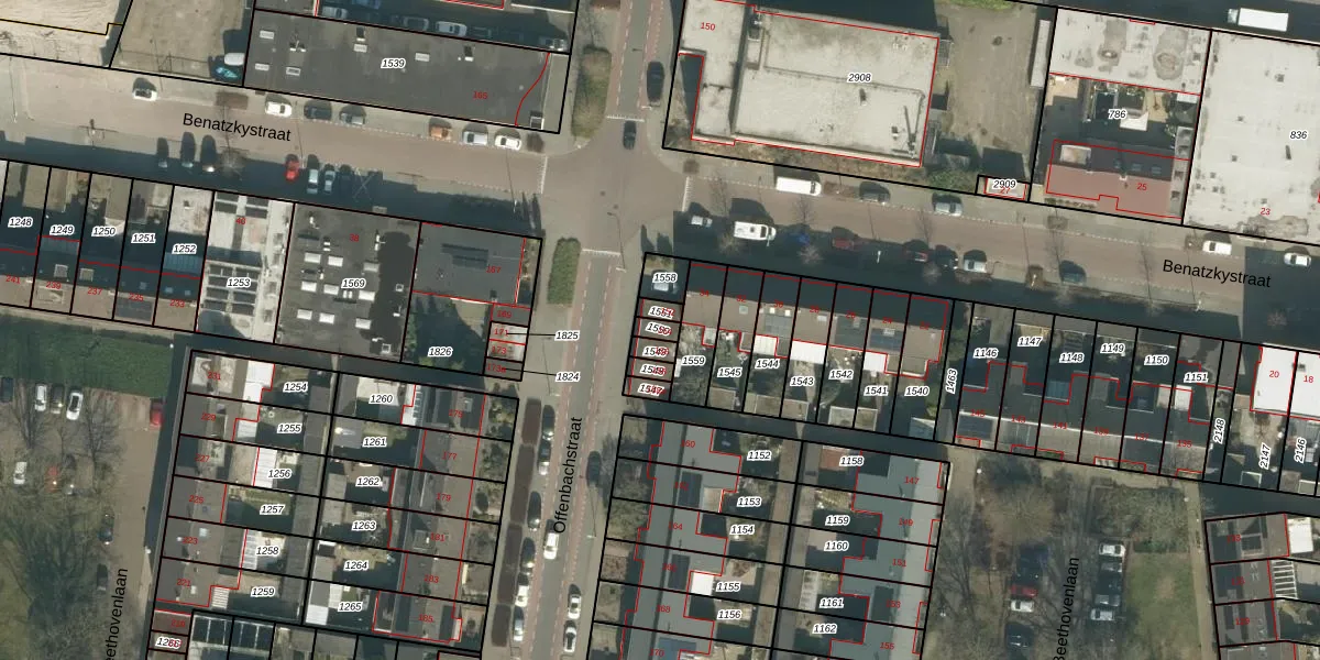 Het perceel waarop Offenbachstraat 154 staat heeft een oppervlakte van 19 m². Dit is een klein perceel. De perceeloppervlakte wordt geregistreerd door het Kadaster. Gedetailleerde informatie over de maten van dit perceel kunt u vinden in het rapport Kadastrale kaart met maatvoering van Offenbachstraat 154.