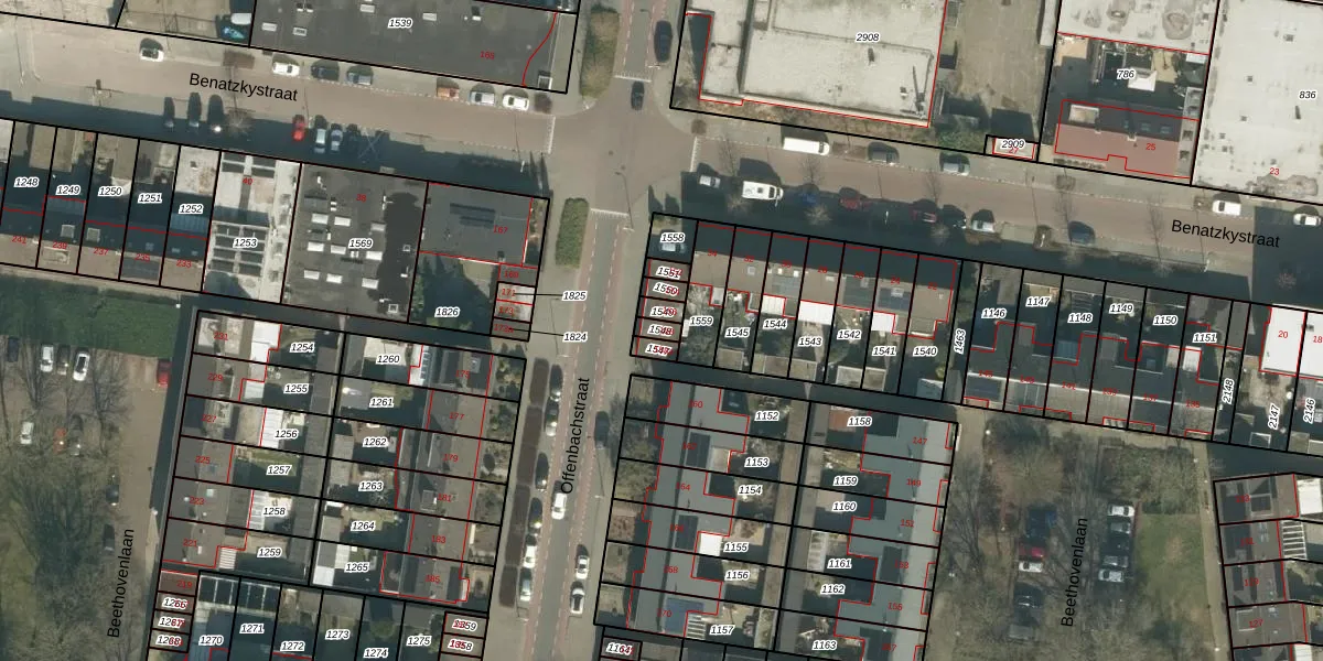 Het perceel waarop Offenbachstraat 158 staat heeft een oppervlakte van 20 m². Dit is een klein perceel. De perceeloppervlakte wordt geregistreerd door het Kadaster. Gedetailleerde informatie over de maten van dit perceel kunt u vinden in het rapport Kadastrale kaart met maatvoering van Offenbachstraat 158.