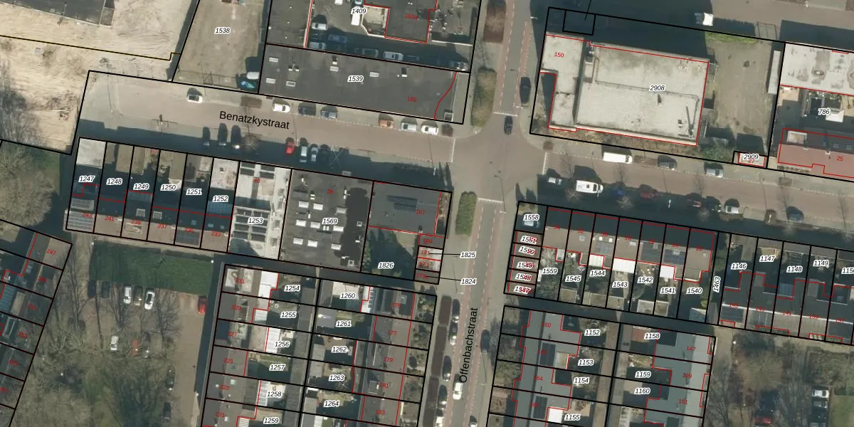 Het perceel waarop Offenbachstraat 167 staat heeft een oppervlakte van 354 m². Dit is een groot perceel. De perceeloppervlakte wordt geregistreerd door het Kadaster. Gedetailleerde informatie over de maten van dit perceel kunt u vinden in het rapport Kadastrale kaart met maatvoering van Offenbachstraat 167.