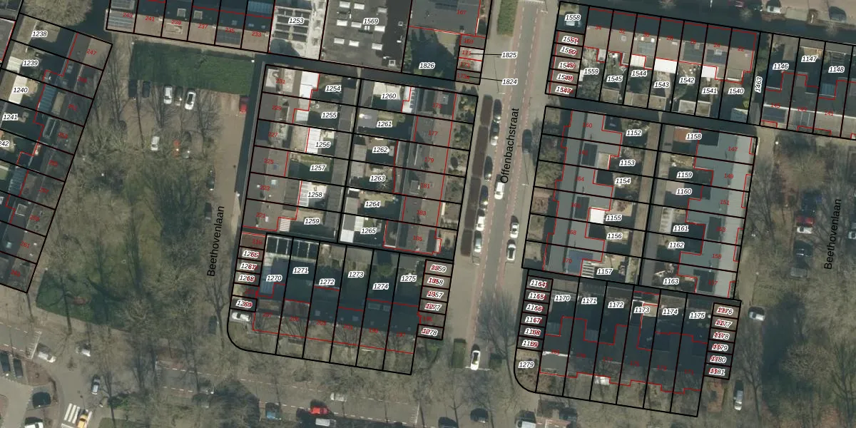 Het perceel waarop Offenbachstraat 183 staat heeft een oppervlakte van 174 m². Dit is een middelgroot perceel. De perceeloppervlakte wordt geregistreerd door het Kadaster. Gedetailleerde informatie over de maten van dit perceel kunt u vinden in het rapport Kadastrale kaart met maatvoering van Offenbachstraat 183.