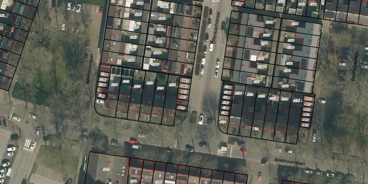 Offenbachstraat 191 is gelegen op kadastraal perceel TBG01T1357. Deze kadastrale aanduiding is uniek en wordt gebruikt door het Kadaster om eigendomsrechten en andere zakelijke rechten vast te leggen. Het perceel maakt onderdeel uit van de kadastrale gemeente Tilburg.