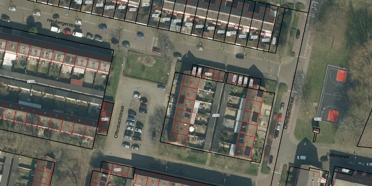 Offenbachstraat 31 is gelegen op kadastraal perceel TBG01S1703. Deze kadastrale aanduiding is uniek en wordt gebruikt door het Kadaster om eigendomsrechten en andere zakelijke rechten vast te leggen. Het perceel maakt onderdeel uit van de kadastrale gemeente Tilburg.