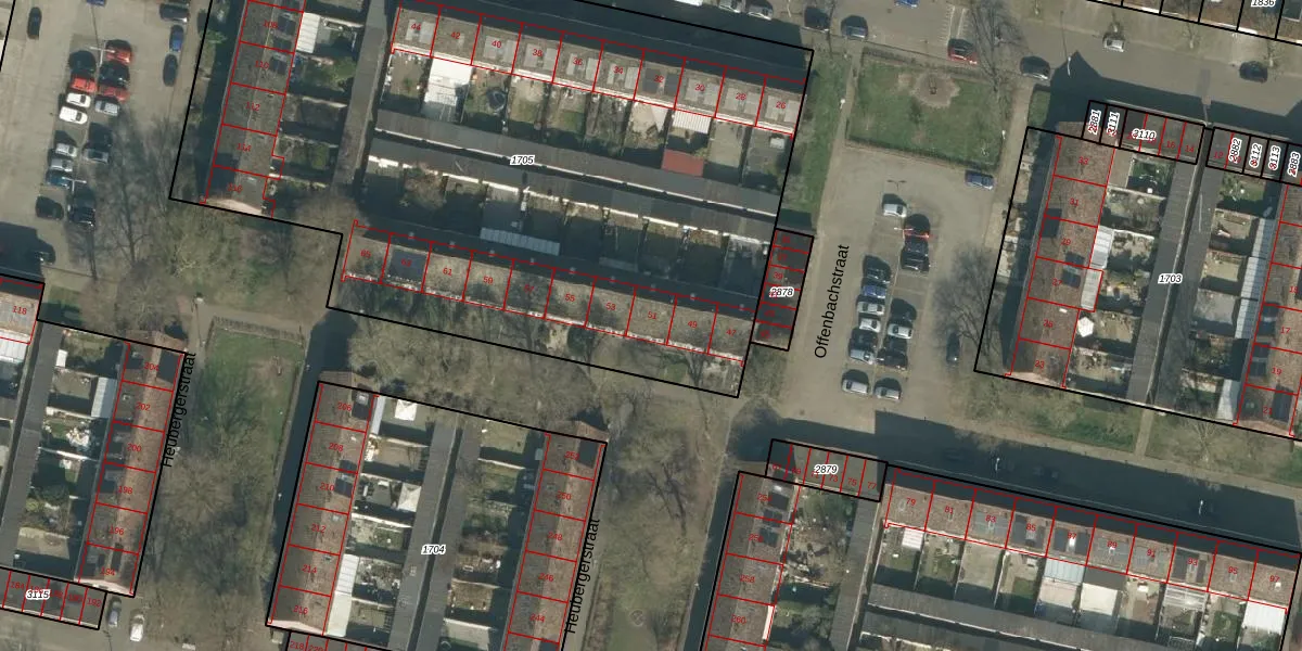 Het perceel waarop Offenbachstraat 51 staat heeft een oppervlakte van 4595 m². Dit is een zeer groot perceel. De perceeloppervlakte wordt geregistreerd door het Kadaster. Gedetailleerde informatie over de maten van dit perceel kunt u vinden in het rapport Kadastrale kaart met maatvoering van Offenbachstraat 51.