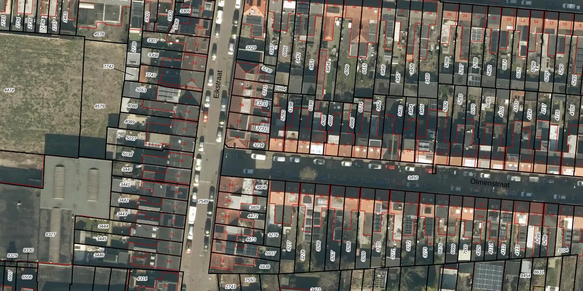 Het perceel waarop Olmenstraat 45 staat heeft een oppervlakte van 98 m². Dit is een klein perceel. De perceeloppervlakte wordt geregistreerd door het Kadaster. Gedetailleerde informatie over de maten van dit perceel kunt u vinden in het rapport Kadastrale kaart met maatvoering van Olmenstraat 45.