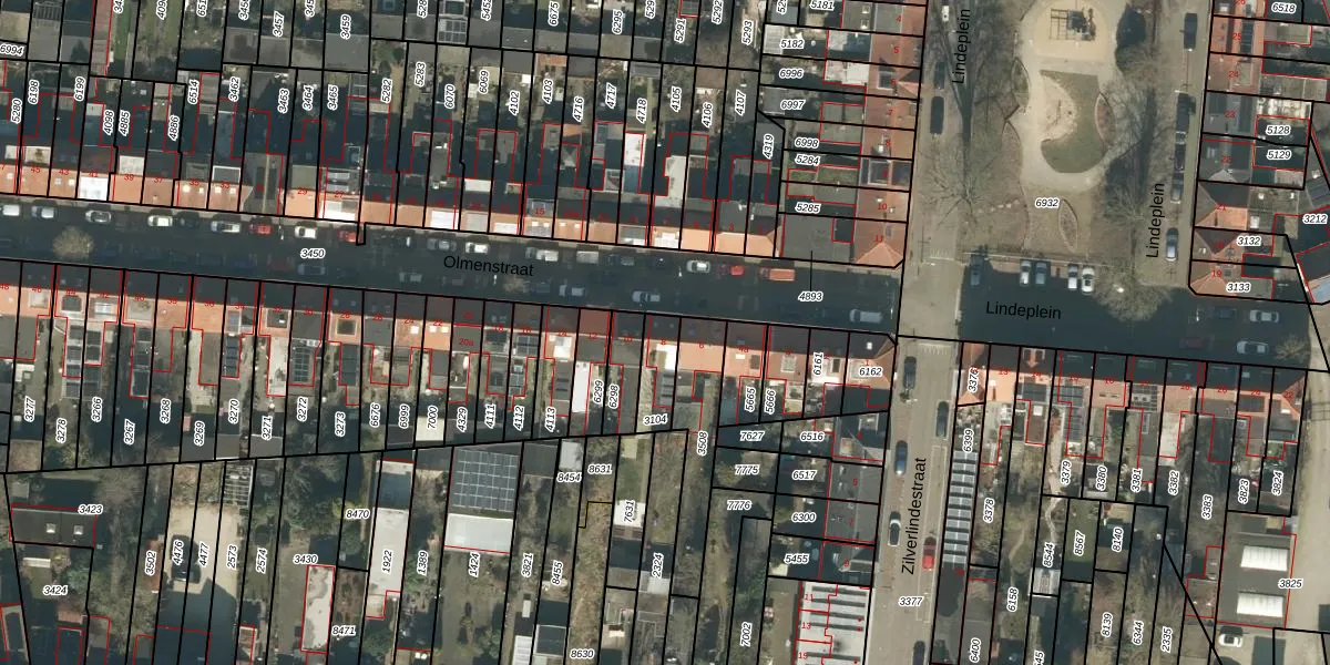 Het perceel waarop Olmenstraat 8 staat heeft een oppervlakte van 92 m². Dit is een klein perceel. De perceeloppervlakte wordt geregistreerd door het Kadaster. Gedetailleerde informatie over de maten van dit perceel kunt u vinden in het rapport Kadastrale kaart met maatvoering van Olmenstraat 8.