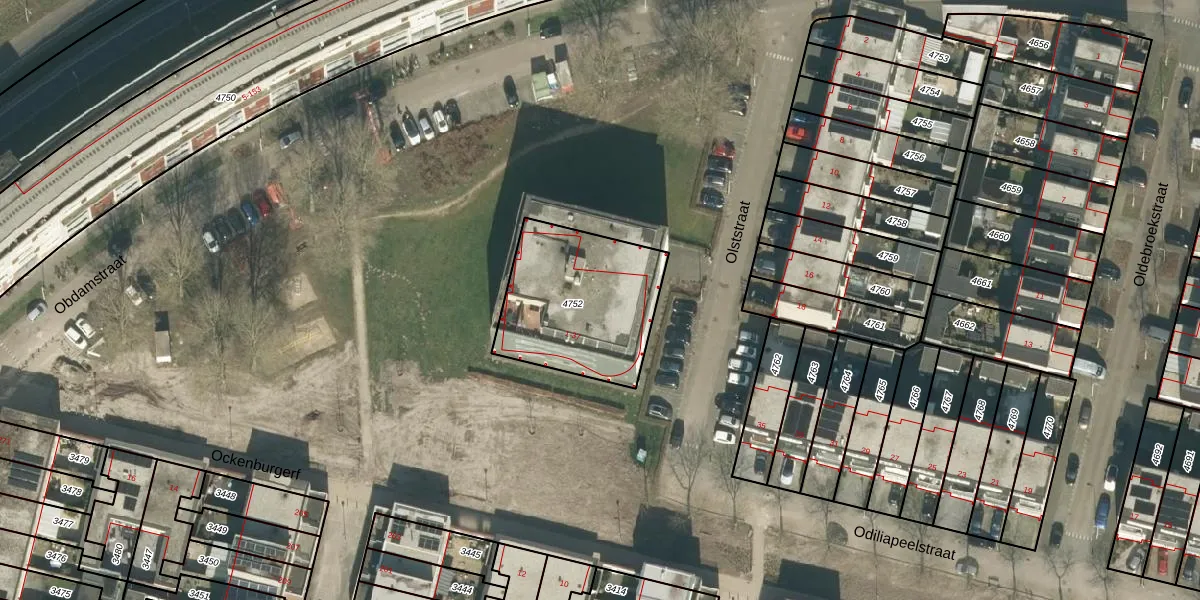 Olststraat 9 is gelegen op kadastraal perceel TBG01AG4752. Deze kadastrale aanduiding is uniek en wordt gebruikt door het Kadaster om eigendomsrechten en andere zakelijke rechten vast te leggen. Het perceel maakt onderdeel uit van de kadastrale gemeente Tilburg.