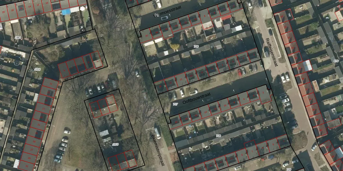 Het perceel waarop Ooftbouwstraat 17 staat heeft een oppervlakte van 2445 m². Dit is een zeer groot perceel. De perceeloppervlakte wordt geregistreerd door het Kadaster. Gedetailleerde informatie over de maten van dit perceel kunt u vinden in het rapport Kadastrale kaart met maatvoering van Ooftbouwstraat 17.