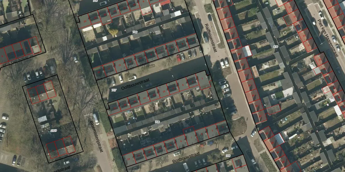 Het perceel waarop Ooftbouwstraat 8 staat heeft een oppervlakte van 2447 m². Dit is een zeer groot perceel. De perceeloppervlakte wordt geregistreerd door het Kadaster. Gedetailleerde informatie over de maten van dit perceel kunt u vinden in het rapport Kadastrale kaart met maatvoering van Ooftbouwstraat 8.