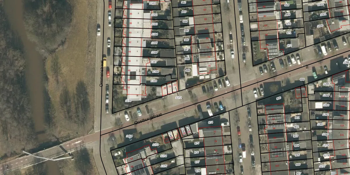 Oostburgstraat 21 is gelegen op kadastraal perceel TBG01AG1171. Deze kadastrale aanduiding is uniek en wordt gebruikt door het Kadaster om eigendomsrechten en andere zakelijke rechten vast te leggen. Het perceel maakt onderdeel uit van de kadastrale gemeente Tilburg.