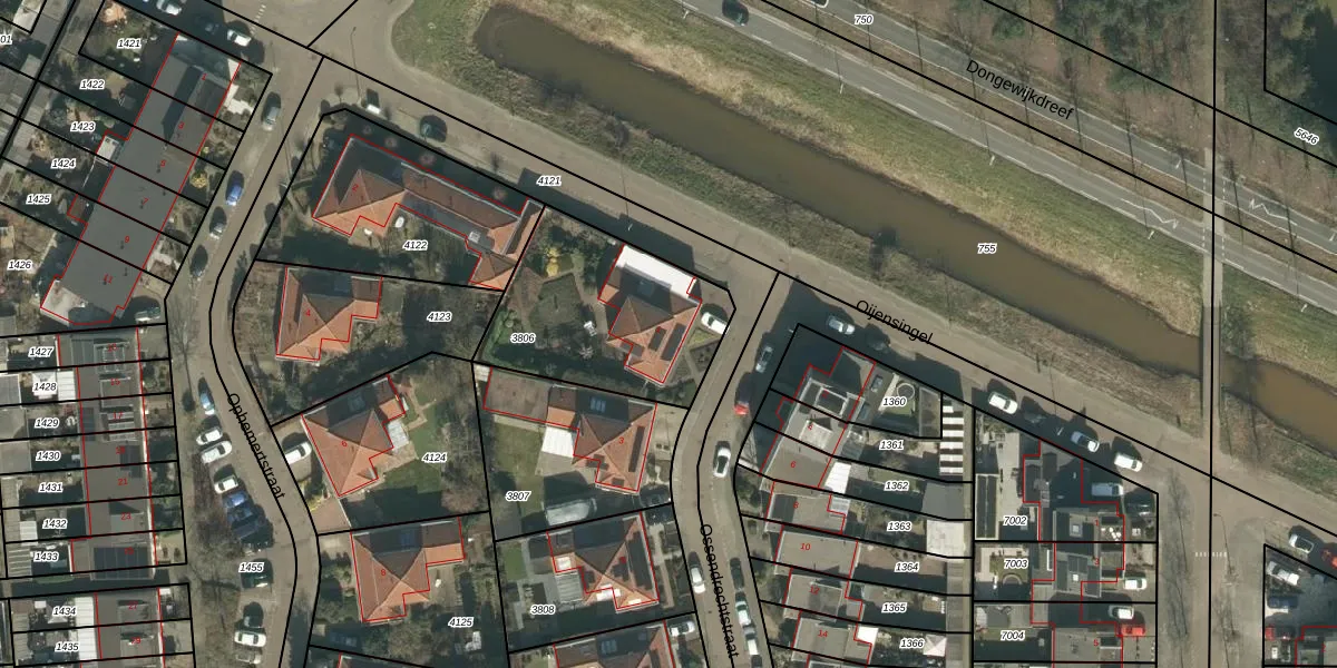 Ossendrechtstraat 1 is gelegen op kadastraal perceel TBG01AG3806. Deze kadastrale aanduiding is uniek en wordt gebruikt door het Kadaster om eigendomsrechten en andere zakelijke rechten vast te leggen. Het perceel maakt onderdeel uit van de kadastrale gemeente Tilburg.