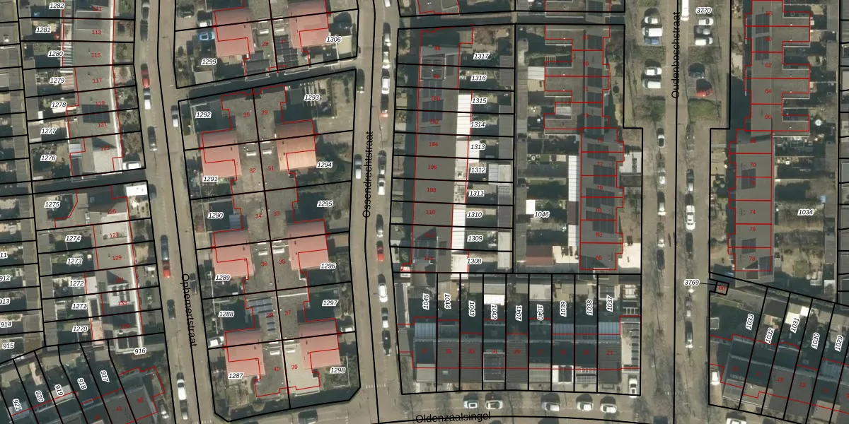 Het perceel waarop Ossendrechtstraat 110 staat heeft een oppervlakte van 156 m². Dit is een middelgroot perceel. De perceeloppervlakte wordt geregistreerd door het Kadaster. Gedetailleerde informatie over de maten van dit perceel kunt u vinden in het rapport Kadastrale kaart met maatvoering van Ossendrechtstraat 110.