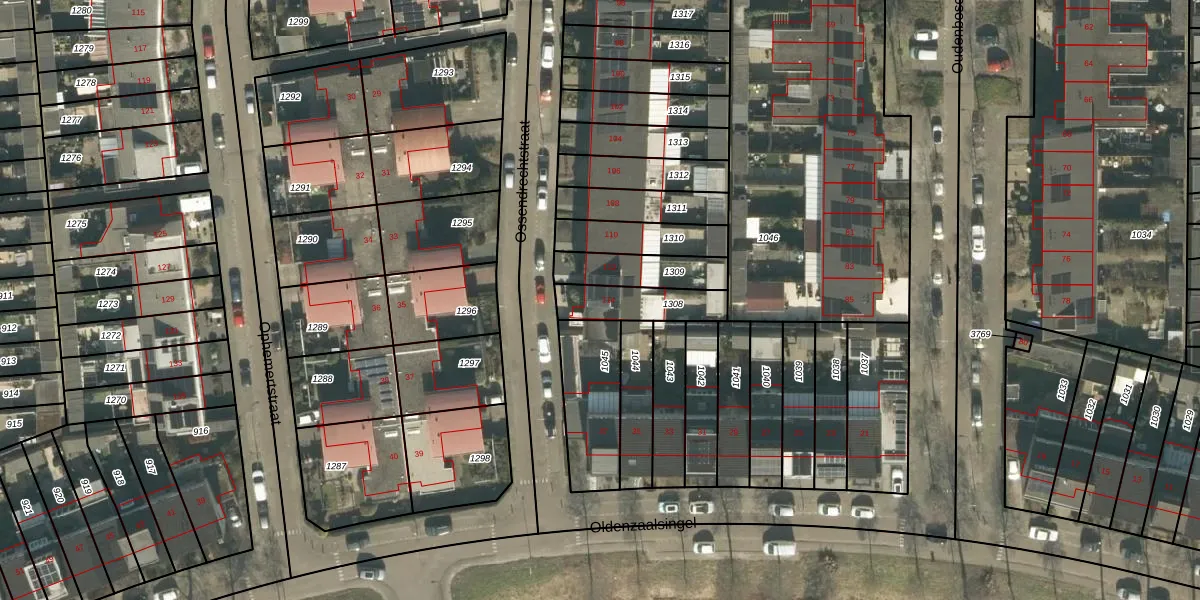 Ossendrechtstraat 114 is gelegen op kadastraal perceel TBG01AG1308. Deze kadastrale aanduiding is uniek en wordt gebruikt door het Kadaster om eigendomsrechten en andere zakelijke rechten vast te leggen. Het perceel maakt onderdeel uit van de kadastrale gemeente Tilburg.