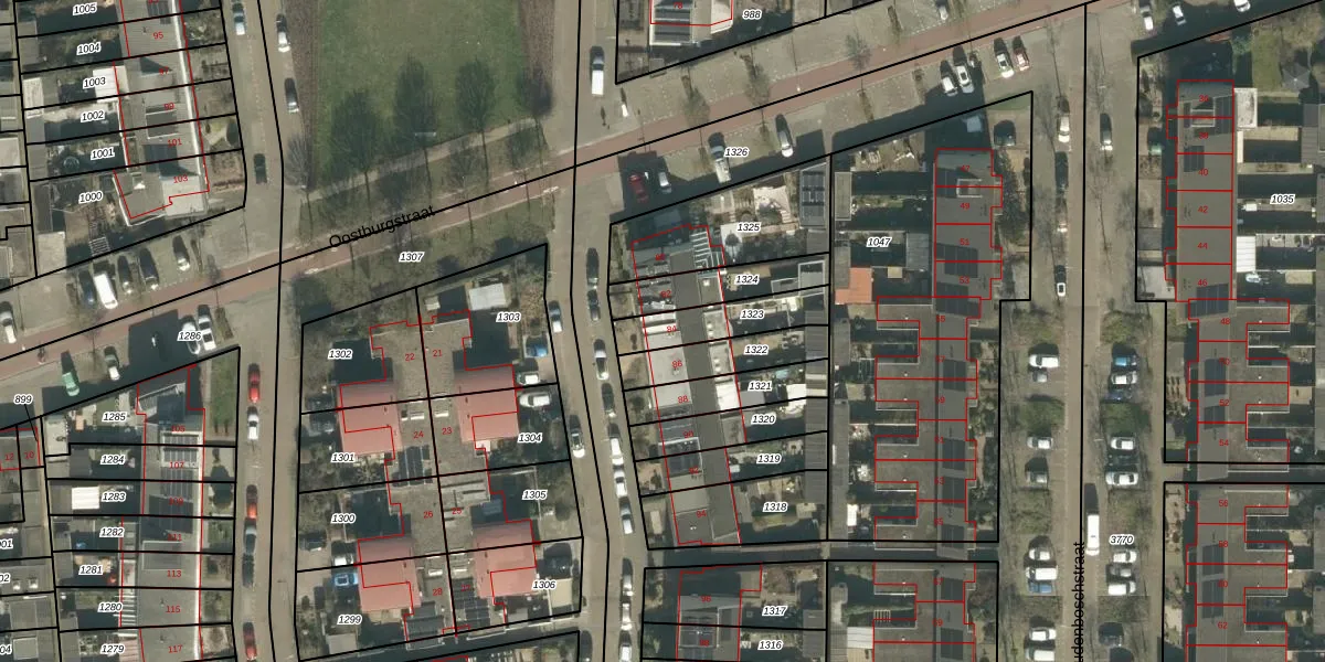 Het perceel waarop Ossendrechtstraat 84 staat heeft een oppervlakte van 179 m². Dit is een middelgroot perceel. De perceeloppervlakte wordt geregistreerd door het Kadaster. Gedetailleerde informatie over de maten van dit perceel kunt u vinden in het rapport Kadastrale kaart met maatvoering van Ossendrechtstraat 84.