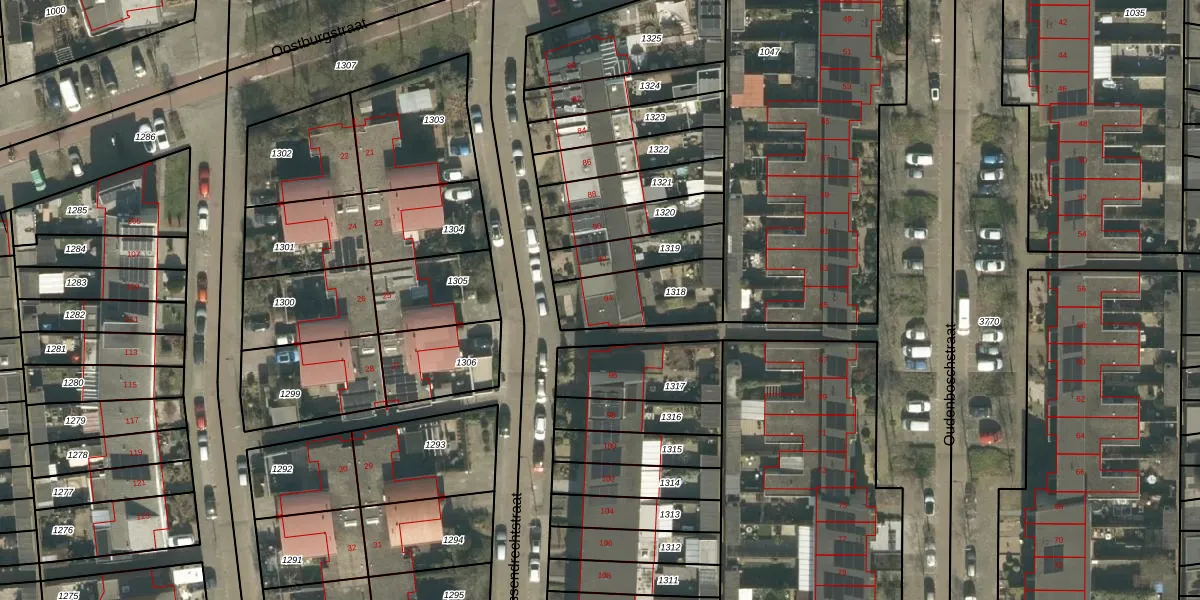 Ossendrechtstraat 94 is gelegen op kadastraal perceel TBG01AG1318. Deze kadastrale aanduiding is uniek en wordt gebruikt door het Kadaster om eigendomsrechten en andere zakelijke rechten vast te leggen. Het perceel maakt onderdeel uit van de kadastrale gemeente Tilburg.