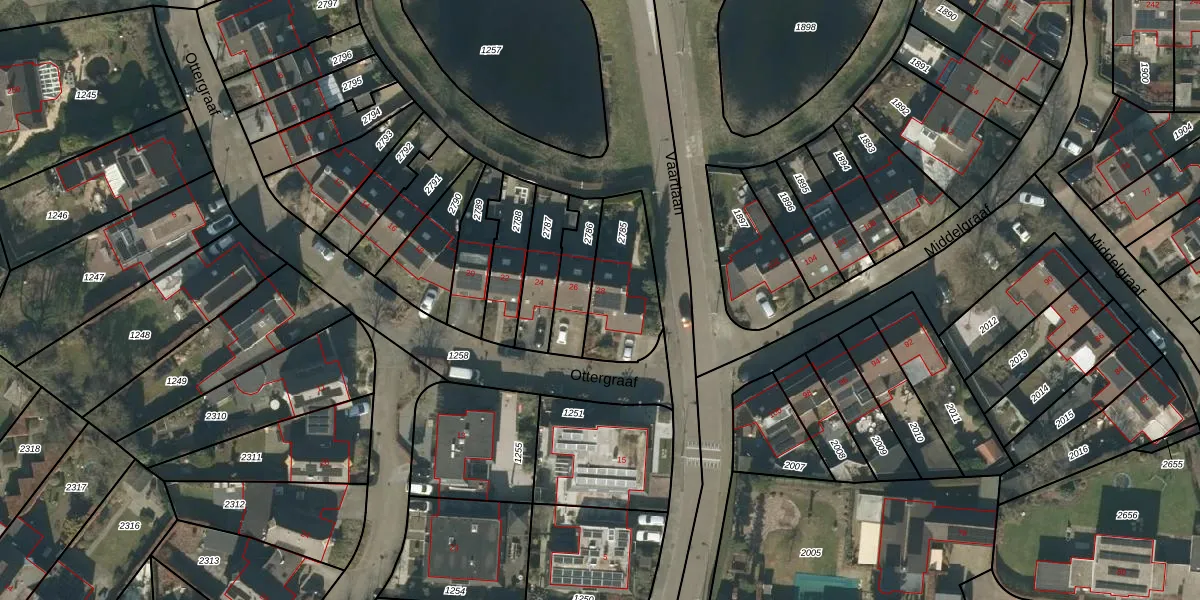 Het perceel waarop Ottergraaf 28 staat heeft een oppervlakte van 281 m². Dit is een middelgroot perceel. De perceeloppervlakte wordt geregistreerd door het Kadaster. Gedetailleerde informatie over de maten van dit perceel kunt u vinden in het rapport Kadastrale kaart met maatvoering van Ottergraaf 28.