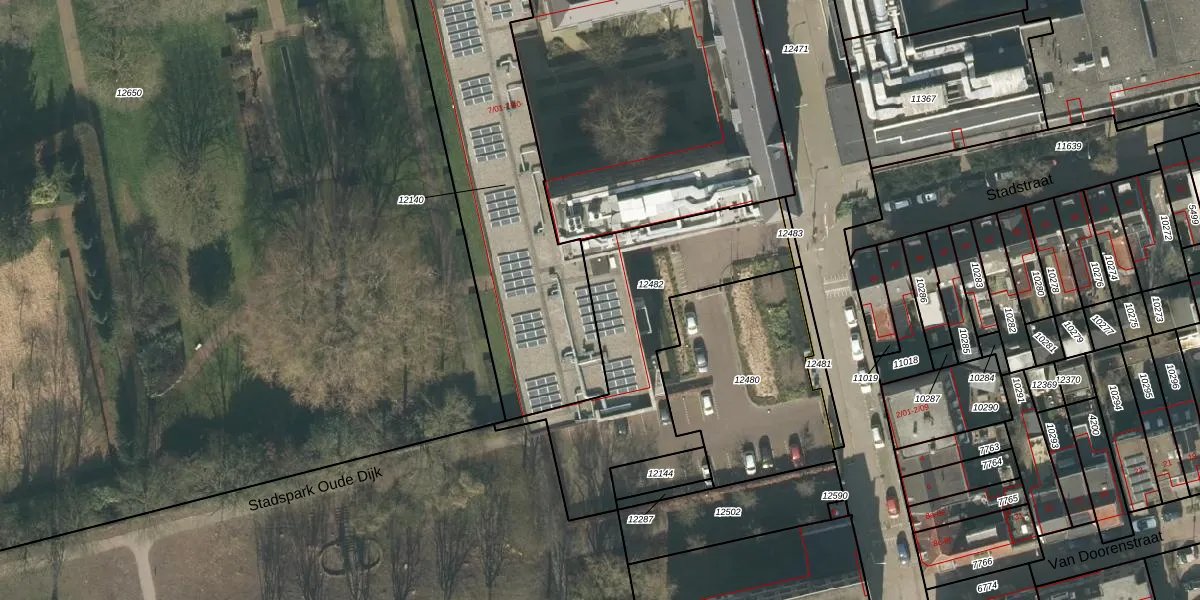 Oude Dijk 7-13 is gelegen op kadastraal perceel TBG01M12482. Deze kadastrale aanduiding is uniek en wordt gebruikt door het Kadaster om eigendomsrechten en andere zakelijke rechten vast te leggen. Het perceel maakt onderdeel uit van de kadastrale gemeente Tilburg.