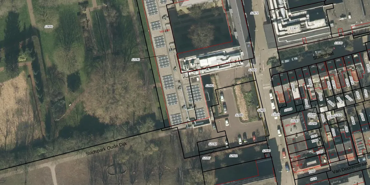 Oude Dijk 7-33 is gelegen op kadastraal perceel TBG01M12140. Deze kadastrale aanduiding is uniek en wordt gebruikt door het Kadaster om eigendomsrechten en andere zakelijke rechten vast te leggen. Het perceel maakt onderdeel uit van de kadastrale gemeente Tilburg.