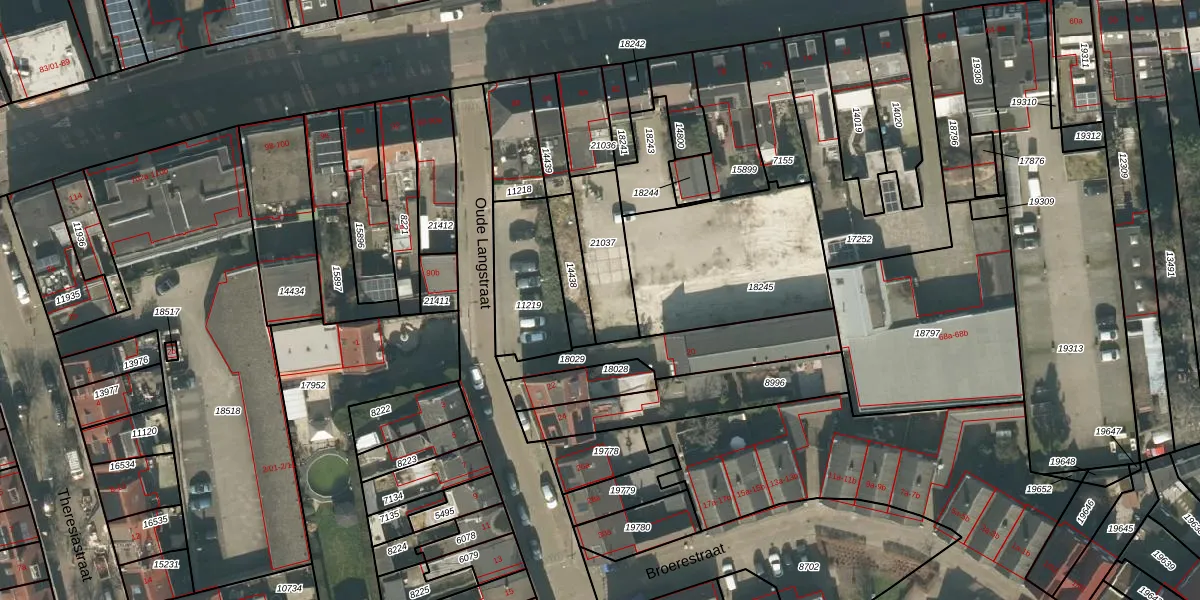 Oude Langstraat 16 is gelegen op kadastraal perceel TBG01N21037. Deze kadastrale aanduiding is uniek en wordt gebruikt door het Kadaster om eigendomsrechten en andere zakelijke rechten vast te leggen. Het perceel maakt onderdeel uit van de kadastrale gemeente Tilburg.