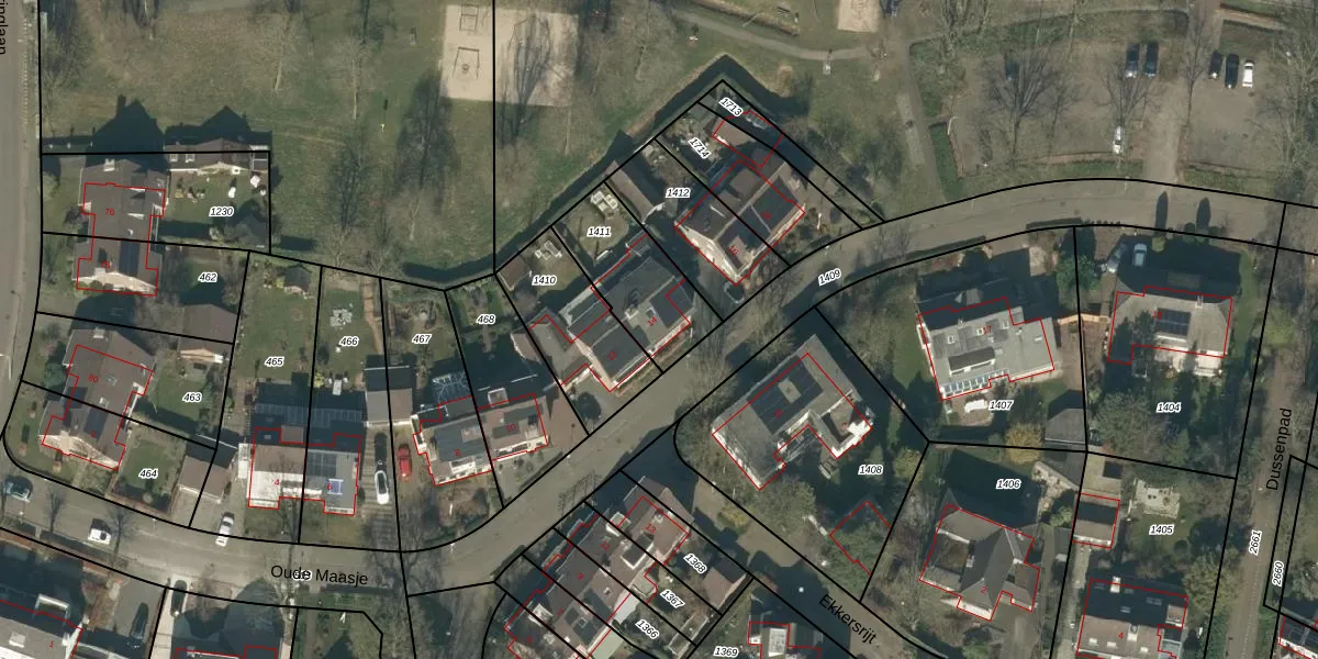 Oude Maasje 14 is gelegen op kadastraal perceel TBG01AB1411. Deze kadastrale aanduiding is uniek en wordt gebruikt door het Kadaster om eigendomsrechten en andere zakelijke rechten vast te leggen. Het perceel maakt onderdeel uit van de kadastrale gemeente Tilburg.