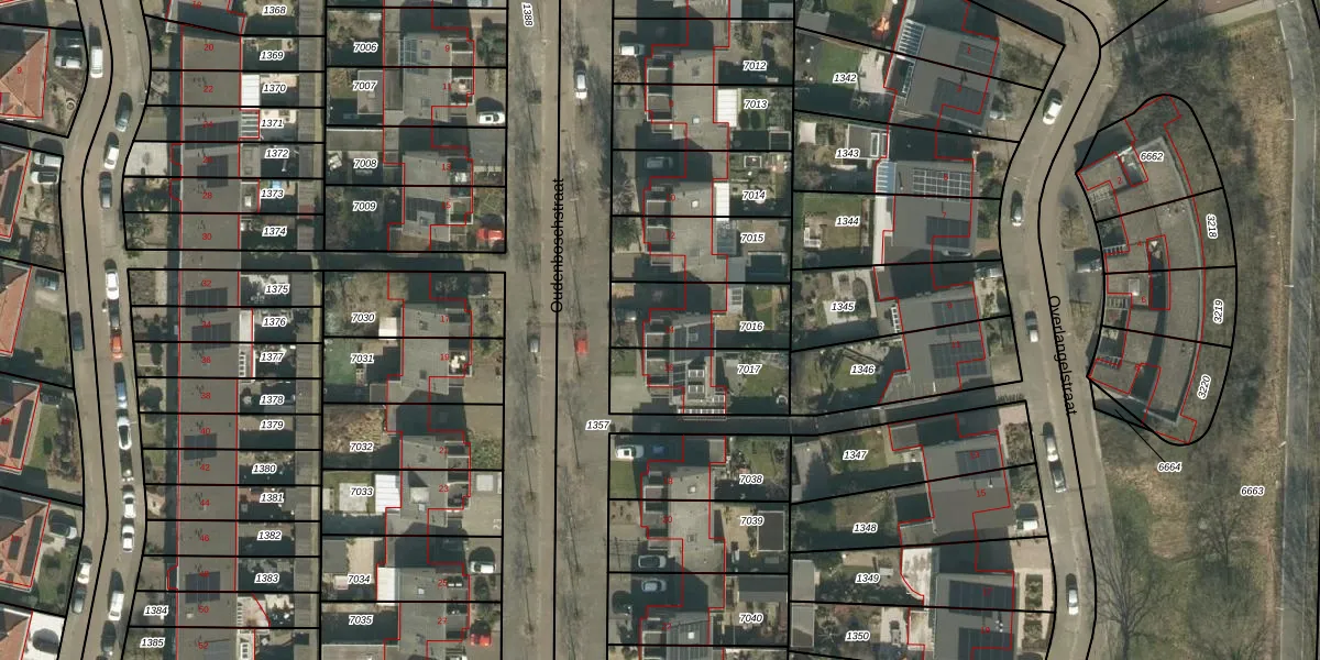 Oudenboschstraat 14 is gelegen op kadastraal perceel TBG01AG7016. Deze kadastrale aanduiding is uniek en wordt gebruikt door het Kadaster om eigendomsrechten en andere zakelijke rechten vast te leggen. Het perceel maakt onderdeel uit van de kadastrale gemeente Tilburg.