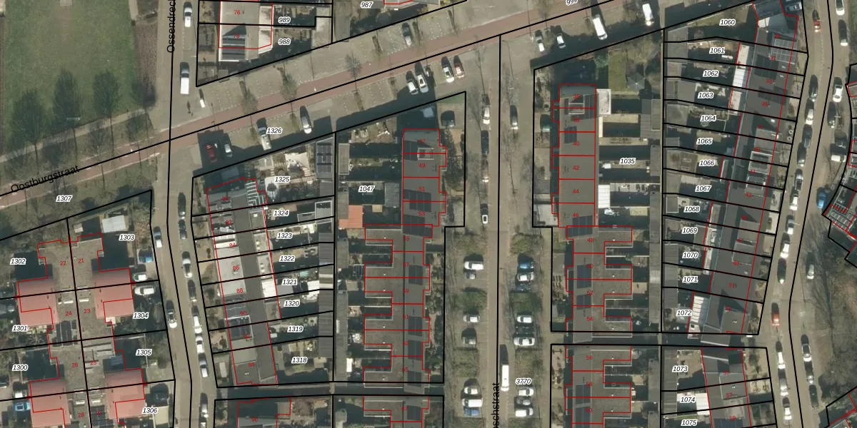 Oudenboschstraat 53 is gelegen op kadastraal perceel TBG01AG1047. Deze kadastrale aanduiding is uniek en wordt gebruikt door het Kadaster om eigendomsrechten en andere zakelijke rechten vast te leggen. Het perceel maakt onderdeel uit van de kadastrale gemeente Tilburg.