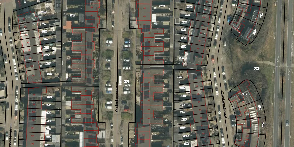 Het perceel waarop Oudenboschstraat 56 staat heeft een oppervlakte van 2070 m². Dit is een zeer groot perceel. De perceeloppervlakte wordt geregistreerd door het Kadaster. Gedetailleerde informatie over de maten van dit perceel kunt u vinden in het rapport Kadastrale kaart met maatvoering van Oudenboschstraat 56.