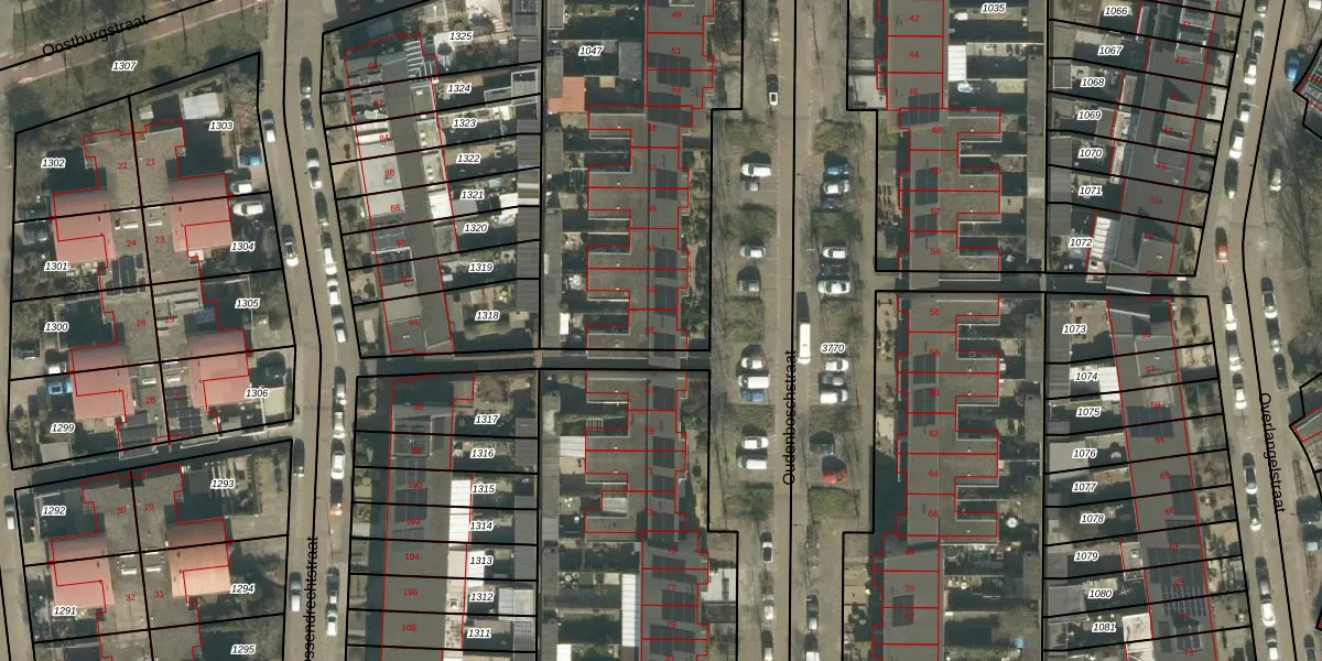 Het perceel waarop Oudenboschstraat 65 staat heeft een oppervlakte van 1747 m². Dit is een zeer groot perceel. De perceeloppervlakte wordt geregistreerd door het Kadaster. Gedetailleerde informatie over de maten van dit perceel kunt u vinden in het rapport Kadastrale kaart met maatvoering van Oudenboschstraat 65.