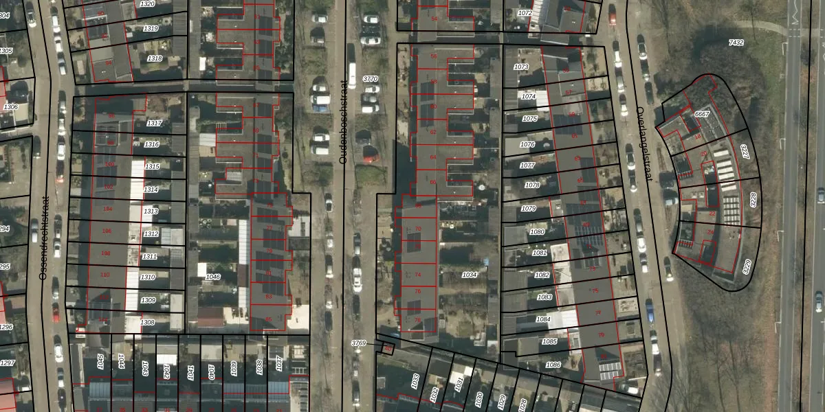 Het perceel waarop Oudenboschstraat 68 staat heeft een oppervlakte van 2070 m². Dit is een zeer groot perceel. De perceeloppervlakte wordt geregistreerd door het Kadaster. Gedetailleerde informatie over de maten van dit perceel kunt u vinden in het rapport Kadastrale kaart met maatvoering van Oudenboschstraat 68.
