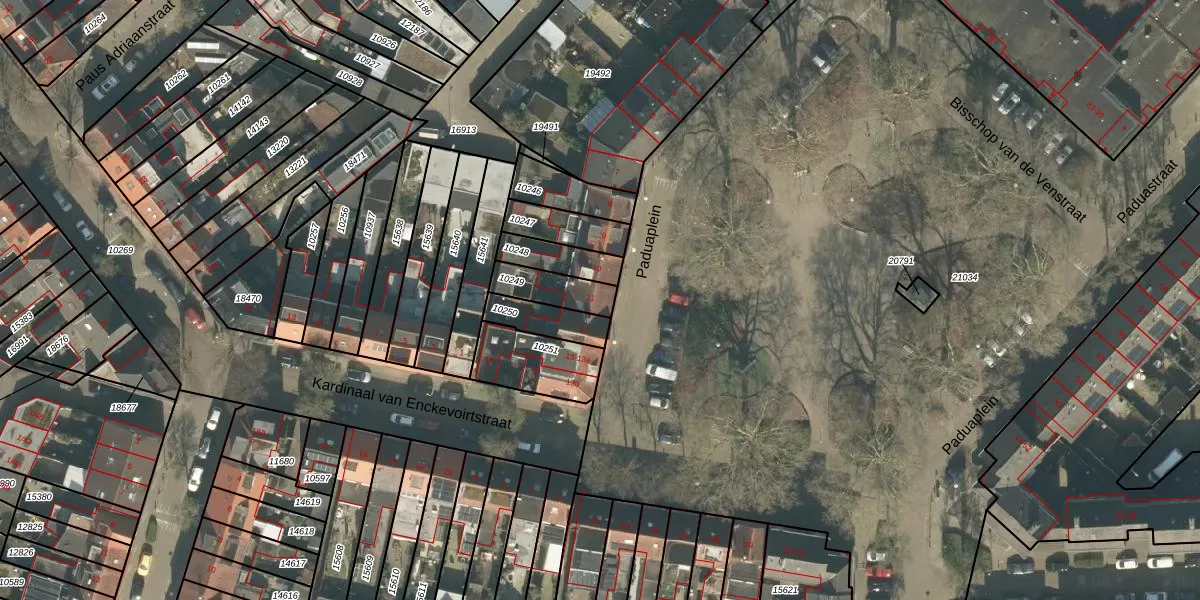 Paduaplein 11 is gelegen op kadastraal perceel TBG01N10249. Deze kadastrale aanduiding is uniek en wordt gebruikt door het Kadaster om eigendomsrechten en andere zakelijke rechten vast te leggen. Het perceel maakt onderdeel uit van de kadastrale gemeente Tilburg.