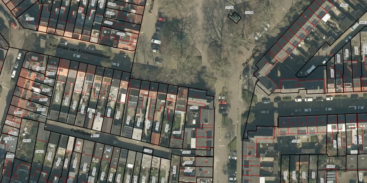 Paduaplein 19 is gelegen op kadastraal perceel TBG01N15620. Deze kadastrale aanduiding is uniek en wordt gebruikt door het Kadaster om eigendomsrechten en andere zakelijke rechten vast te leggen. Het perceel maakt onderdeel uit van de kadastrale gemeente Tilburg.