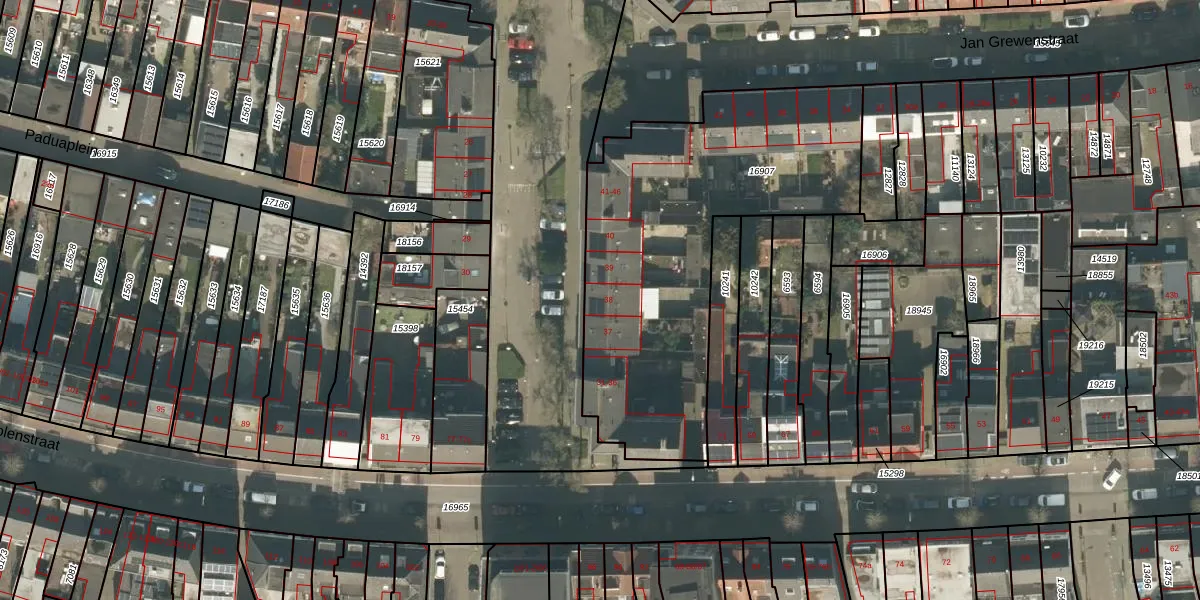 Paduaplein 38 is gelegen op kadastraal perceel TBG01N16907. Deze kadastrale aanduiding is uniek en wordt gebruikt door het Kadaster om eigendomsrechten en andere zakelijke rechten vast te leggen. Het perceel maakt onderdeel uit van de kadastrale gemeente Tilburg.