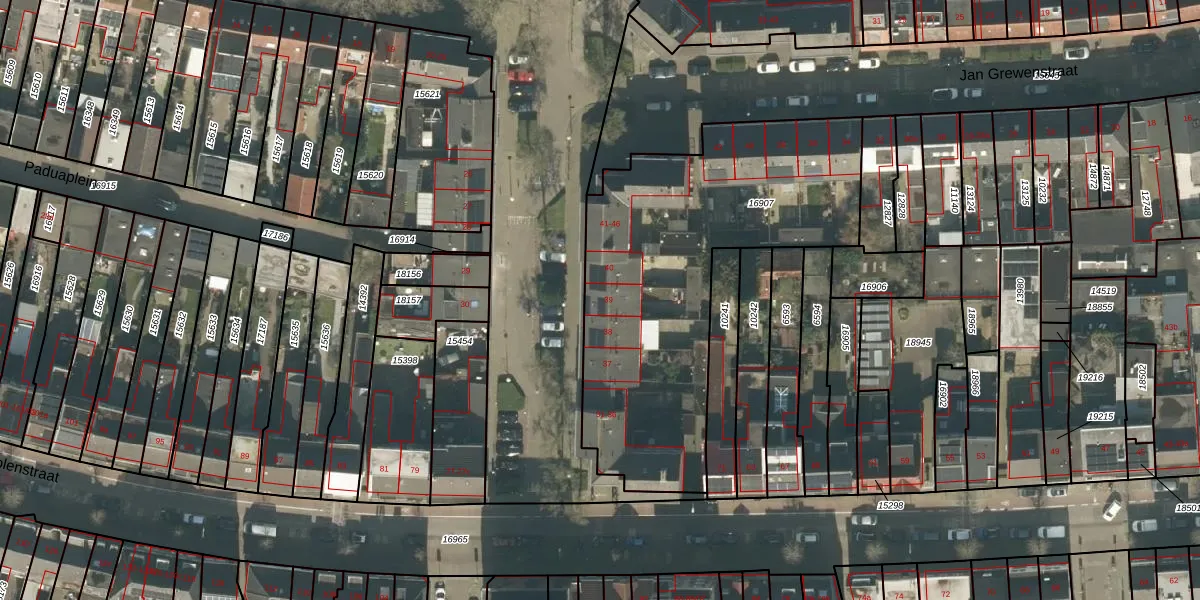 Paduaplein 39 is gelegen op kadastraal perceel TBG01N16907. Deze kadastrale aanduiding is uniek en wordt gebruikt door het Kadaster om eigendomsrechten en andere zakelijke rechten vast te leggen. Het perceel maakt onderdeel uit van de kadastrale gemeente Tilburg.