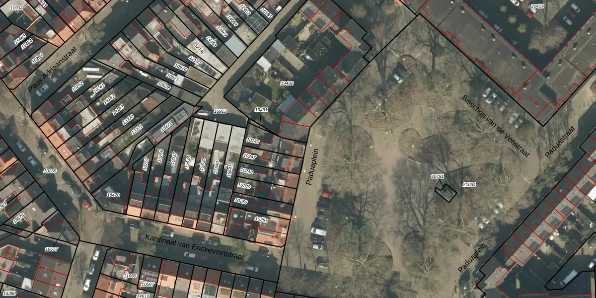 Paduaplein 8 is gelegen op kadastraal perceel TBG01N10246. Deze kadastrale aanduiding is uniek en wordt gebruikt door het Kadaster om eigendomsrechten en andere zakelijke rechten vast te leggen. Het perceel maakt onderdeel uit van de kadastrale gemeente Tilburg.