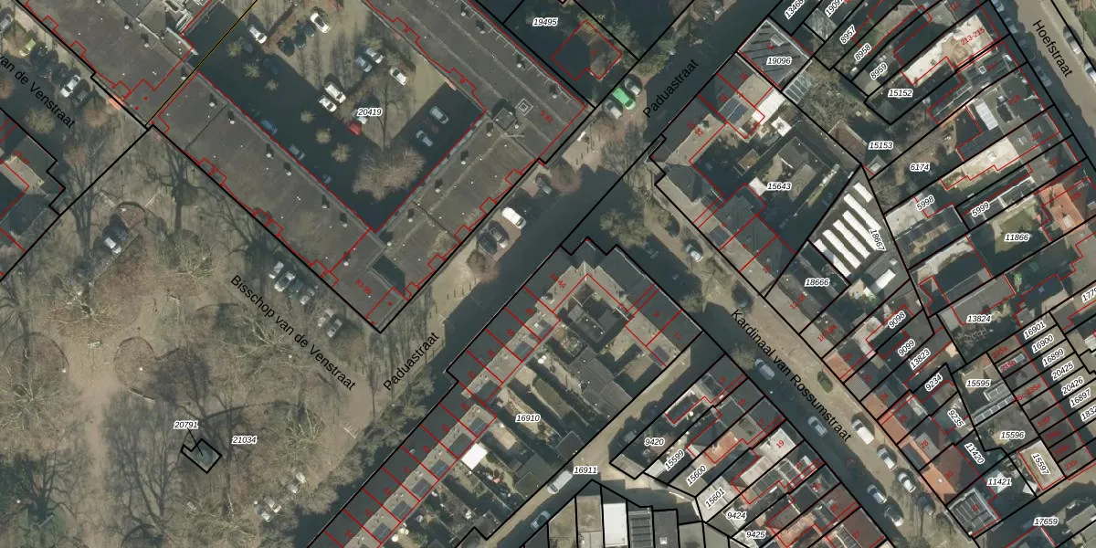 Paduastraat 36 is gelegen op kadastraal perceel TBG01N16910. Deze kadastrale aanduiding is uniek en wordt gebruikt door het Kadaster om eigendomsrechten en andere zakelijke rechten vast te leggen. Het perceel maakt onderdeel uit van de kadastrale gemeente Tilburg.