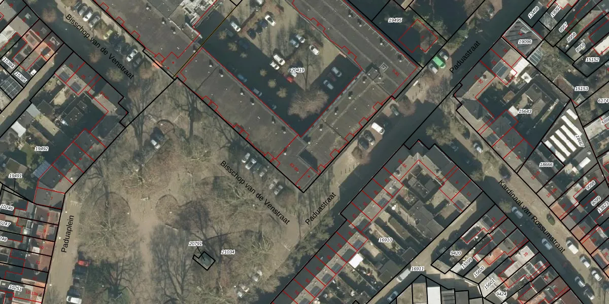 Paduastraat 91 is gelegen op kadastraal perceel TBG01N20419. Deze kadastrale aanduiding is uniek en wordt gebruikt door het Kadaster om eigendomsrechten en andere zakelijke rechten vast te leggen. Het perceel maakt onderdeel uit van de kadastrale gemeente Tilburg.