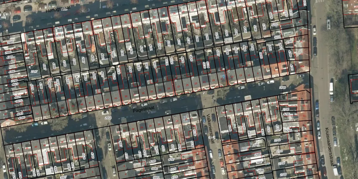 Het perceel waarop Pagestraat 27 staat heeft een oppervlakte van 123 m². Dit is een middelgroot perceel. De perceeloppervlakte wordt geregistreerd door het Kadaster. Gedetailleerde informatie over de maten van dit perceel kunt u vinden in het rapport Kadastrale kaart met maatvoering van Pagestraat 27.