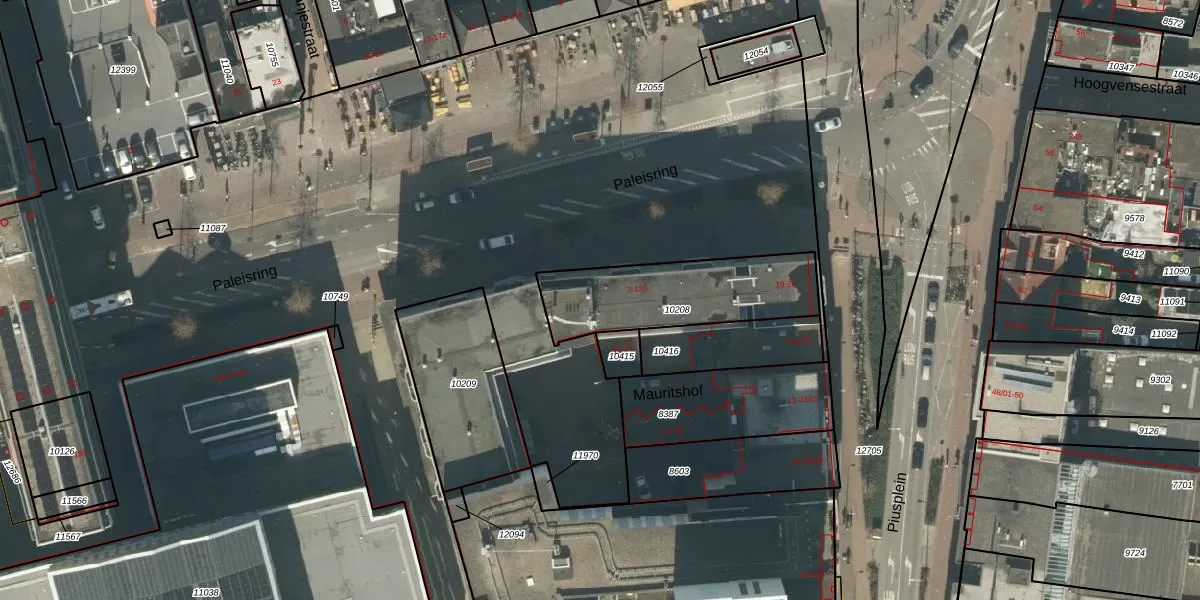 Paleisring 54 is gelegen op kadastraal perceel TBG01M10208. Deze kadastrale aanduiding is uniek en wordt gebruikt door het Kadaster om eigendomsrechten en andere zakelijke rechten vast te leggen. Het perceel maakt onderdeel uit van de kadastrale gemeente Tilburg.