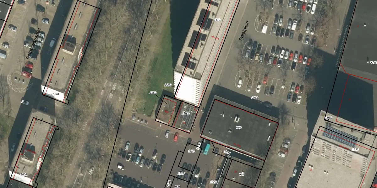 Het perceel waarop Paletplein 114 staat heeft een oppervlakte van 1067 m². Dit is een zeer groot perceel. De perceeloppervlakte wordt geregistreerd door het Kadaster. Gedetailleerde informatie over de maten van dit perceel kunt u vinden in het rapport Kadastrale kaart met maatvoering van Paletplein 114.