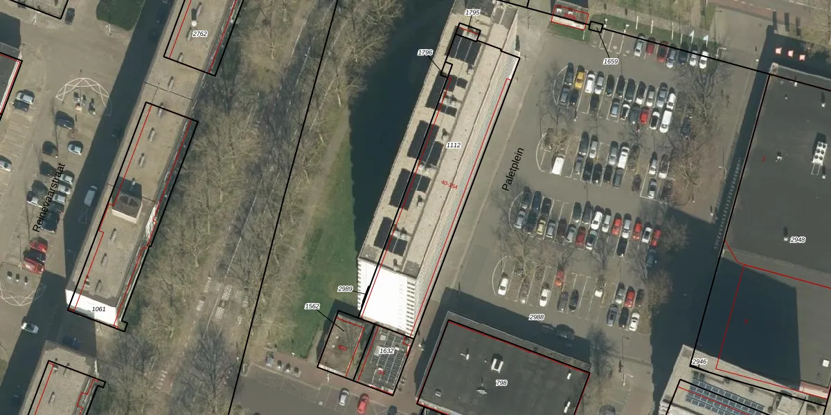 Het perceel waarop Paletplein 134 staat heeft een oppervlakte van 1067 m². Dit is een zeer groot perceel. De perceeloppervlakte wordt geregistreerd door het Kadaster. Gedetailleerde informatie over de maten van dit perceel kunt u vinden in het rapport Kadastrale kaart met maatvoering van Paletplein 134.