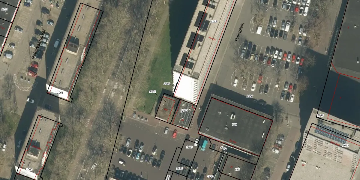 Het perceel waarop Paletplein 146 staat heeft een oppervlakte van 1067 m². Dit is een zeer groot perceel. De perceeloppervlakte wordt geregistreerd door het Kadaster. Gedetailleerde informatie over de maten van dit perceel kunt u vinden in het rapport Kadastrale kaart met maatvoering van Paletplein 146.