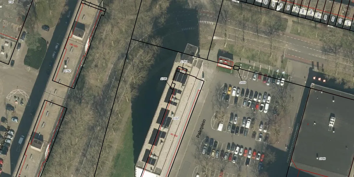Het perceel waarop Paletplein 154 staat heeft een oppervlakte van 1067 m². Dit is een zeer groot perceel. De perceeloppervlakte wordt geregistreerd door het Kadaster. Gedetailleerde informatie over de maten van dit perceel kunt u vinden in het rapport Kadastrale kaart met maatvoering van Paletplein 154.