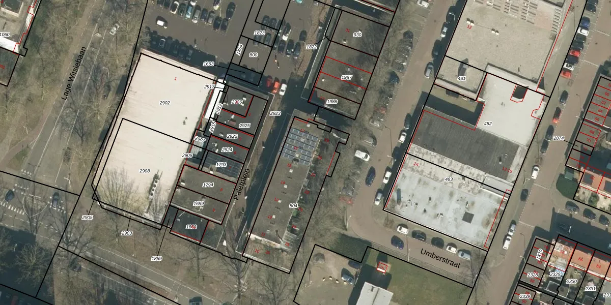 Het perceel waarop Paletplein 20 staat heeft een oppervlakte van 829 m². Dit is een groot perceel. De perceeloppervlakte wordt geregistreerd door het Kadaster. Gedetailleerde informatie over de maten van dit perceel kunt u vinden in het rapport Kadastrale kaart met maatvoering van Paletplein 20.
