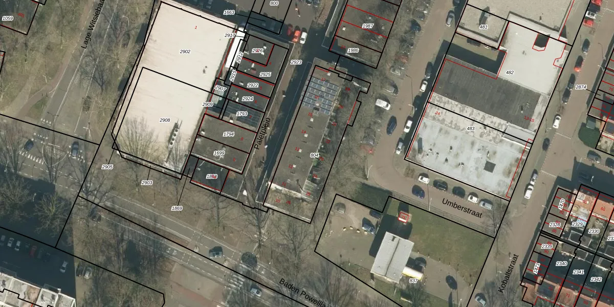 Het perceel waarop Paletplein 23 staat heeft een oppervlakte van 829 m². Dit is een groot perceel. De perceeloppervlakte wordt geregistreerd door het Kadaster. Gedetailleerde informatie over de maten van dit perceel kunt u vinden in het rapport Kadastrale kaart met maatvoering van Paletplein 23.