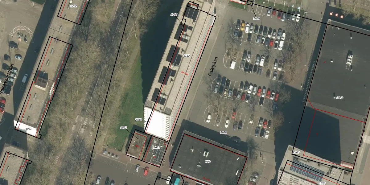 Het perceel waarop Paletplein 50 staat heeft een oppervlakte van 1067 m². Dit is een zeer groot perceel. De perceeloppervlakte wordt geregistreerd door het Kadaster. Gedetailleerde informatie over de maten van dit perceel kunt u vinden in het rapport Kadastrale kaart met maatvoering van Paletplein 50.
